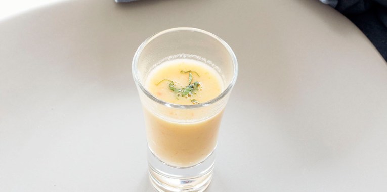 I love spicy soups and this one puts me in mind of a soup that was served to me at a party as a canapé, and cooked by the chef Rob Foster.